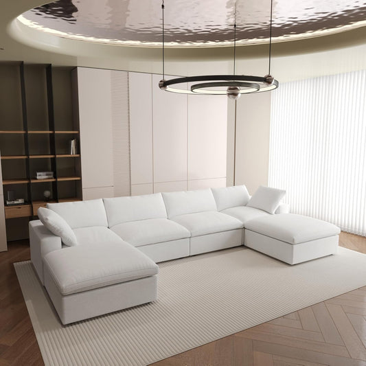 Nuvé® Solace Modular Bouclé Cloud Sofa - Snow White - 4-Seater Sectional Sofa with 2 Ottomans