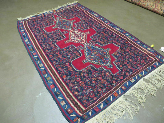4' X 5.5' Vintage Handmade Turkish Tribal Wool Rug Medallion Nice
