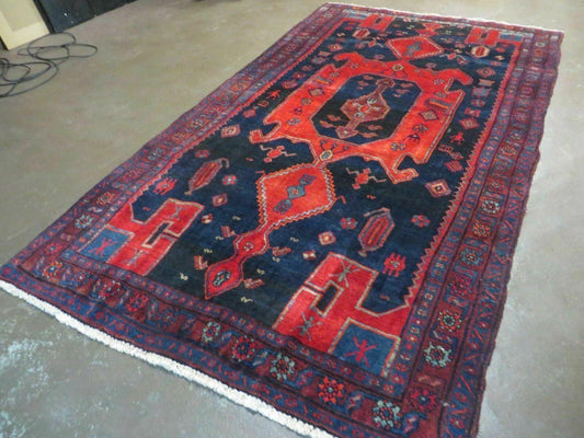 4' 6" X 8' 2" Antique Handmade India Tribal Geometric Wool Rug Red Blue # 129