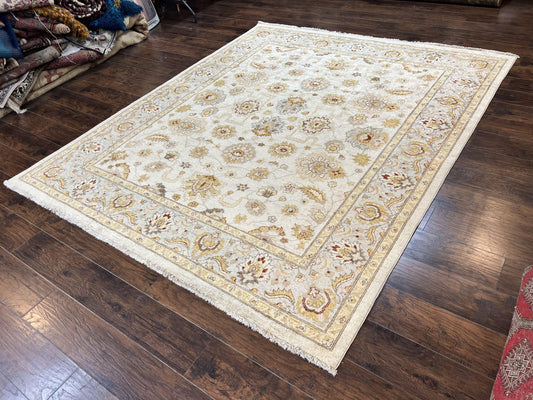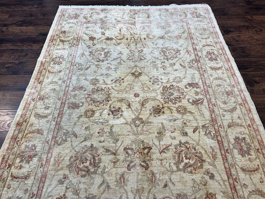 Peshawar Rug 6 x 9.6, Pakistani Chobi Carpet, Neutral Colors, Vintage Rug for Modern Home, Handmade Wool Rug, Beige