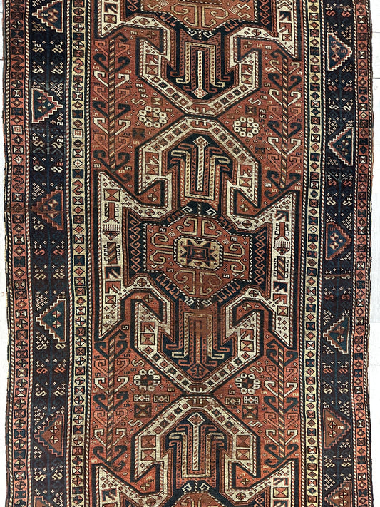 Pre-1900 Triple Shield Sewan Kazak Rug, 4’4”x11’7”
