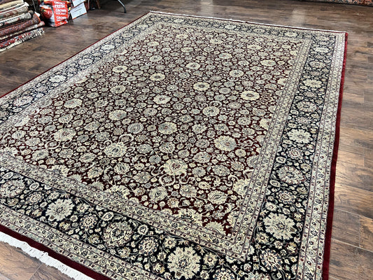 Sino Persian Rug 9x11, Burgundy and Navy Blue, Fine 200 KPSI, Floral Allover