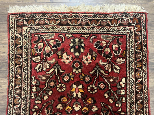 Small Persian Sarouk Rug 2x4, Floral, Red Hand Knotted Wool Traditional Oriental Carpet, Antique Persian Rug 2 x 4