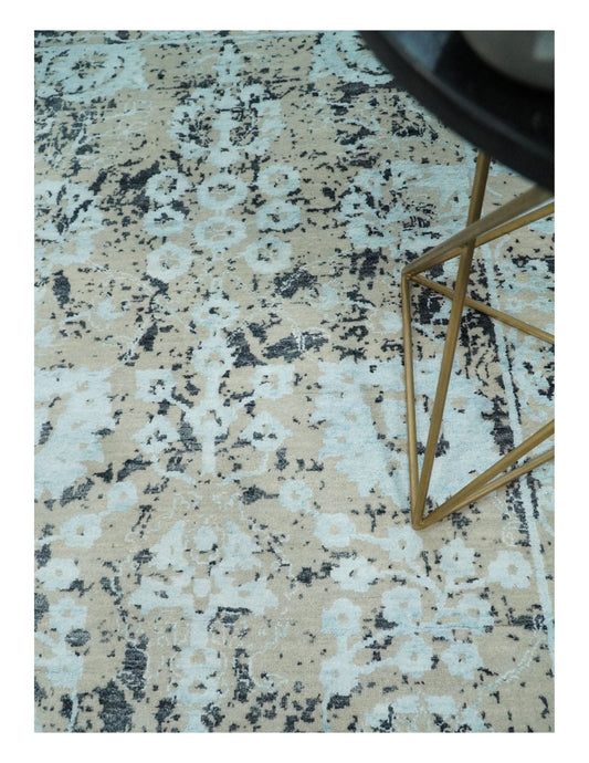 4x6 Fine Hand Knotted Aqua, Beige and Black Traditional Vintage Persian Style Antique Wool and Bamboo Silk Rug | AGR10