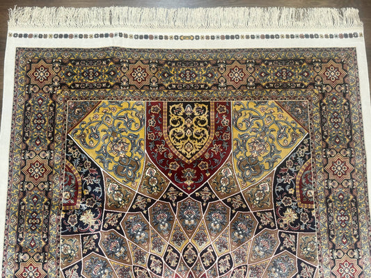 Turkish Silk Rug 4x6, Dome Design, Memluk Carpet, Bamboo Silk, New