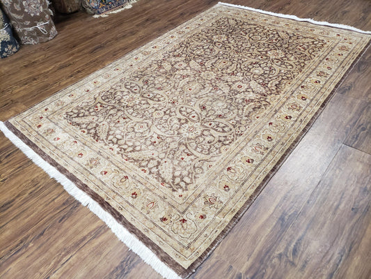 Vintage Pak-Persian Area Rug 4.7 x 7.2 Wool Hand-Knotted Beige & Brown Oriental Pakistani Peshawar Carpet 4x6 - 5x7 Decorative Farmhouse Rug