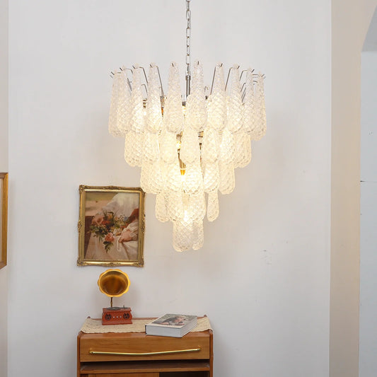 Vintage Transparent Murano Glass Petals Drop Chandelier