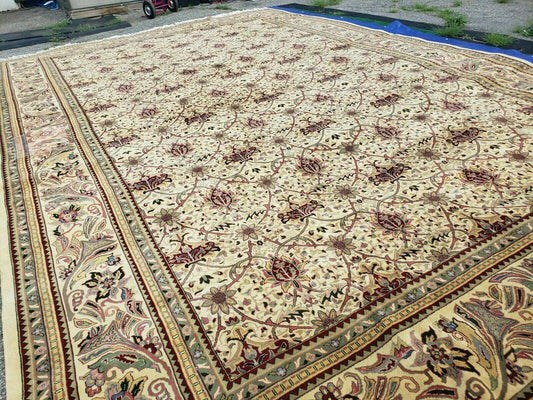 12' X 18' One-of-a-Kind Indian Agra Hand-Knotted Wool Rug Handmade Organic Dyes
