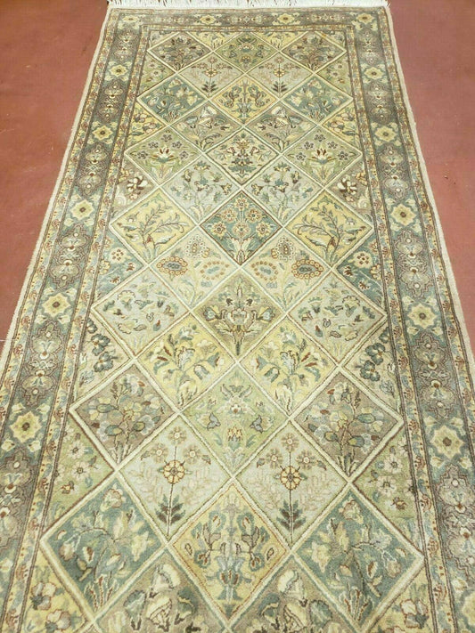 2' 7" X 9' Vintage Handmade India Floral Oriental Wool Runner Rug Hand Knotted