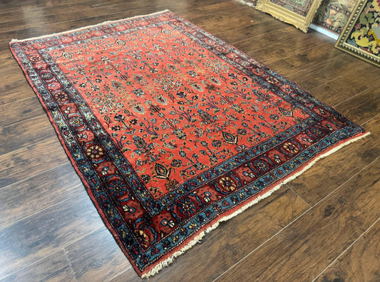 Antique Persian Tribal Rug 5 x 6.6, Tomato Red, Hamadan Angelas Rug