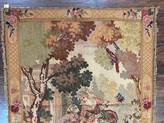 Antique Tapestry 3x4, European French Tapestry, Hand Loomed Victorian Tapestry, Vintage Wool Tapestry 3 x 4 ft