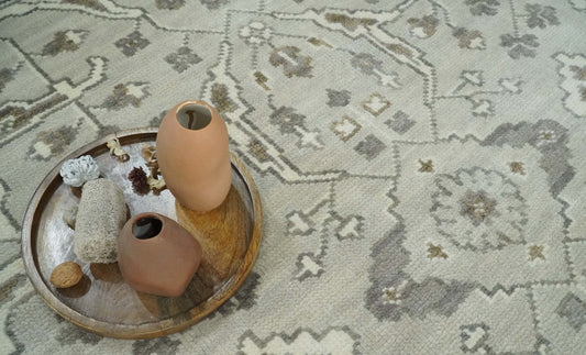 Antique Style Custom Made Traditional Silver and Brown Oriental Oushak Wool Area Rug
