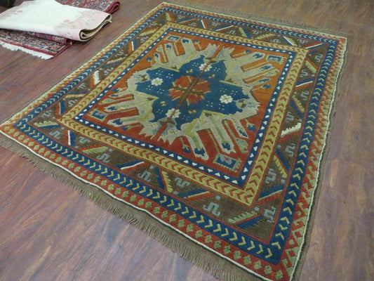 5' X 5.5' Vintage Handmade Turkish Kazak Colorful Wool Square Rug Carpet Bohemian Boho Vintage Interior Home Design