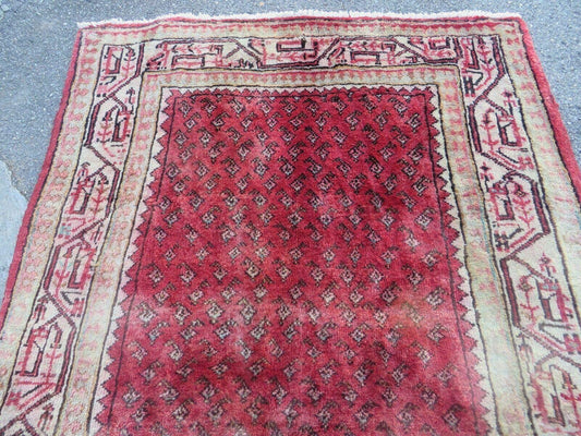 4x6 Antique Rug Handmade Wool Rug Organic Dyes Red Ivory Red Tribal Rug Boho Rug