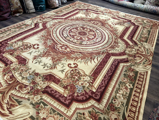 Aubusson Rug 9x12, French European Design, Floral, Elegant