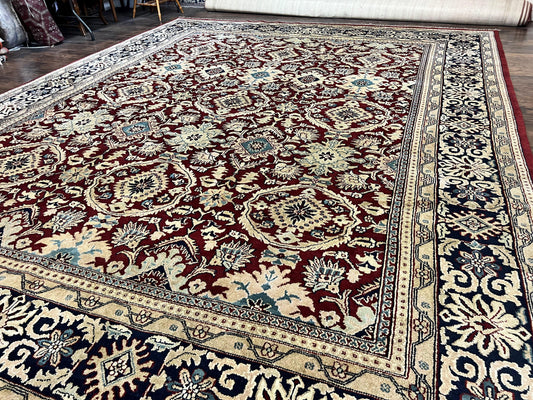 Indian Agra Rug 12x15, Maroon, Hand Knotted Vintage Palace Sized Oriental Carpet
