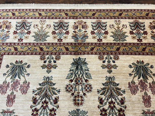 Persian Sarouk Rug 7x10, Red and Ivory, Floral Bouquets, Birds