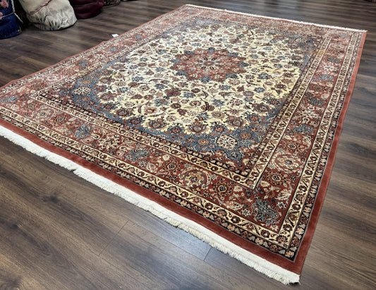 Persian Rug 8x10, Sino Persian Floral Medallion Carpet, Traditional Wool Area Rug, Cream and Brick Red, Fine 210 KPSI