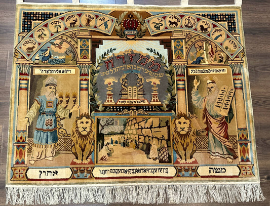 Judaica Pictorial Rug 3x4, Wall Hanging Persian Rug, Moses and Aaron, 12 Tribes, 10 Commandments