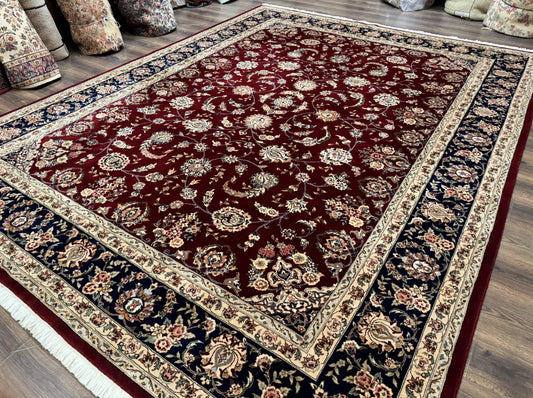 Sino Persian Rug 9x11, Burgundy and Navy Blue, Fine 200 KPSI, Floral Allover