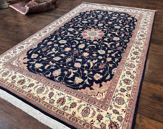 Navy Blue Pak Persian Rug 6x10, Floral Medallion, Traditional Persian Area Rug, Fine 240 KPSI