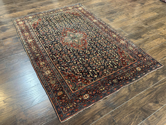 Persian Rug 4x7 Antique Sarouk Farahan Carpet, Navy Blue and Red Wool Rug