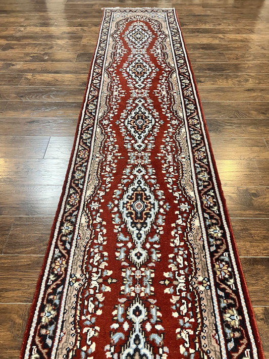 Indo Persian Heriz Runner Rug 2 x 12 ft, Hand Knotted Wool Hallway Rug, Red & Black