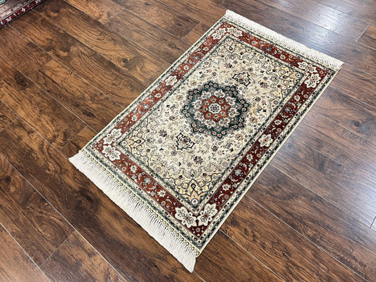 Persian Qum Silk Rug 3.5 x 5.5, Floral Medallion, Very Fine 350 KPSI, Handmade Silk on Silk Rug, Vintage