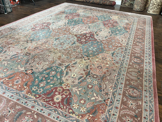 Sino Persian Rug 10x14, Multicolor Panel Design, Wool Handmade Vintage Large Rug