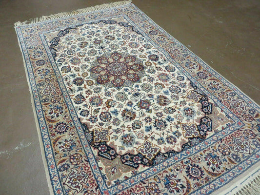 Persian Isfahan Rug 3x6, Fine 650 KPSI, Hand Knotted, Ivory