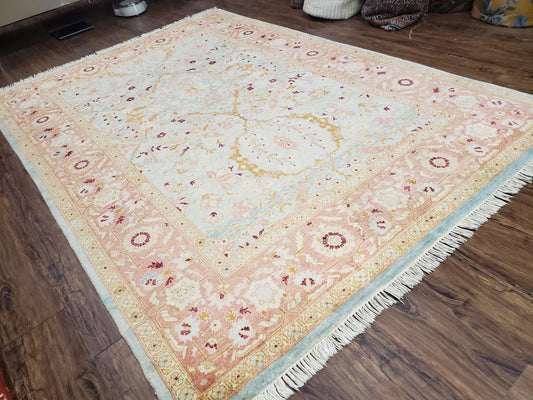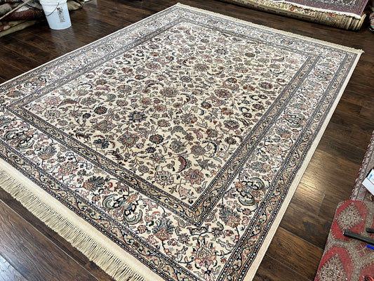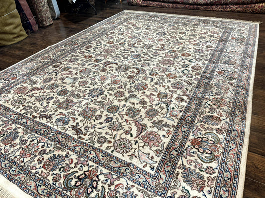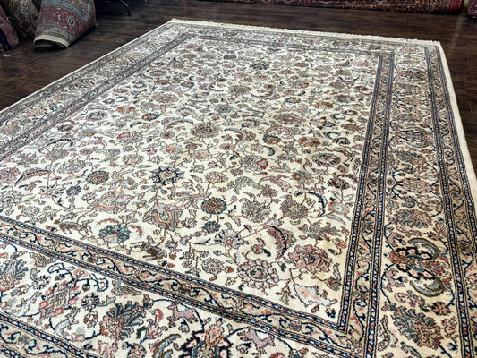 Karastan Rug #738 Tabriz Design 8.8 x 10.6, Room Sized Wool Pile Karastan Carpet, Vintage Discontinued Karastan Area Rug, Ivory, Floral Rug