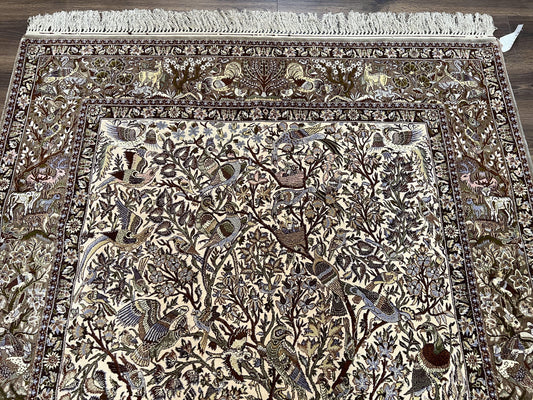 Persian Isfahan Rug 5x8 - Tree of Life, Animal Pictorials, Kork Wool & Silk