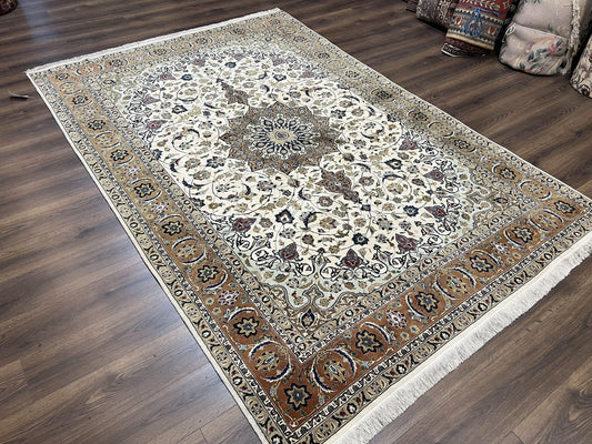 Wonderful Persian Tabriz Rug 7x10, Floral Medallion, Very Fine Oriental Carpet, Ivory