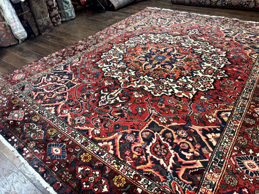 Rare Persian Bakhtiari Rug 10x13, Red, Semi Antique, Large Persian Carpet, Handmade