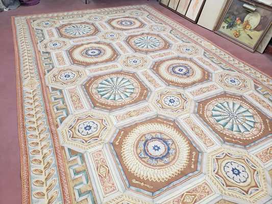 New Chinese Needlepoint Rug 8x14 - 9x14, French European Panel Design, Elegant Dining Room Rug, Flatweave Hand Woven Carpet, Handmade, Wool