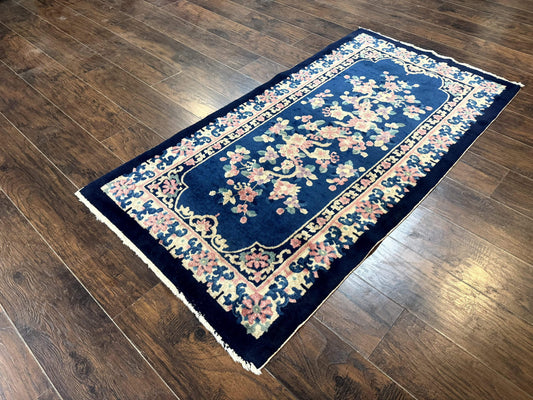 Chinese Rug 3x6, Peking Rug, Blue Chinese Wool Rug, Fete Rug