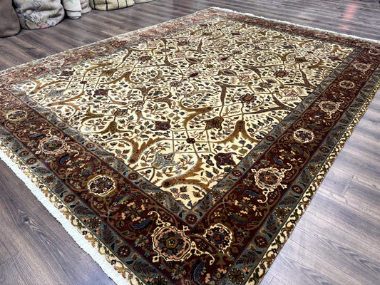 Sino Persian Rug 9x12, Vintage Wool Oriental Carpet, Floral Medallion, Wool Rug, Cream and Maroon