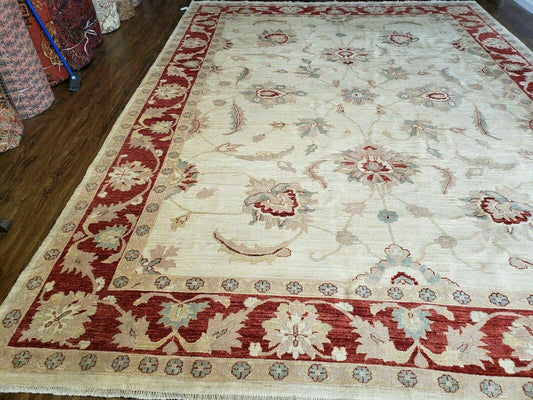 Peshawar Rug 10x14 Rug 10x14 Vintage Rug 10x14 Handmade Rug Chobi Rug Ivory Beige Red Rug