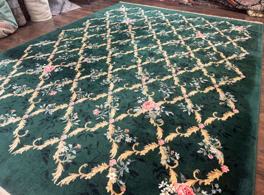 Karastan Garden of Eden Rug 8.8 x 11.8, Green Savonnerie 509/1733, Wool