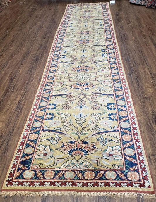 Hallway Runner Rug, Kitchen Runner, Sultanabad Hand Knotted Rug, Farmhouse Rug, 1950s Rug, Mahal Rug, Turkish Rug, Long Runner, Yellow
