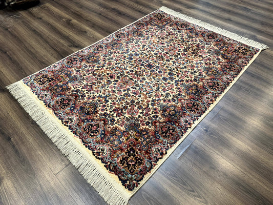 Karastan Ivory Kirman Rug 4x6, Floral Kirman #759, Wool Pile, Vintage, Original 700 Series