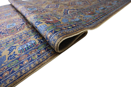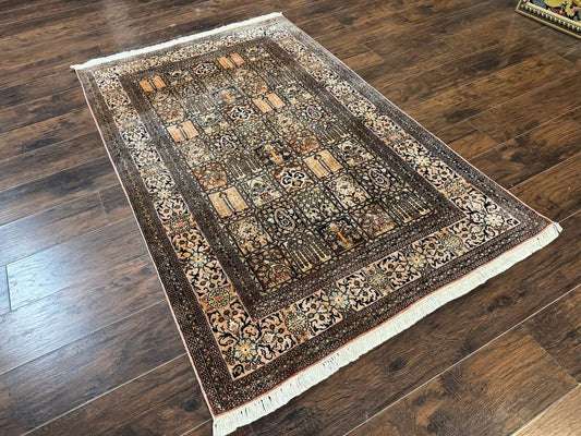 Indian Kashmiri Silk Rug 4x6, Panel Design, Multicolor, Fine