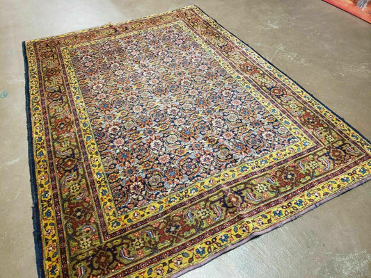 5' X 6' 5" Vintage Handmade Turkish Wool Rug Herati Fish Design Detailed Colorful Organic Vegetable Dyes Traditional Design