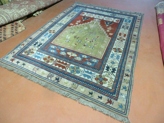 5' X 7' Vintage Handmade Turkish Wool Rug Carpet Melas Animal Human Motifs Colorful Bohemian Boho Style Home Décor