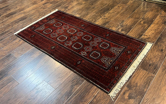 Antique Persian Turkoman Rug 3x6, Wool Tribal Handmade Carpet, Red and Black