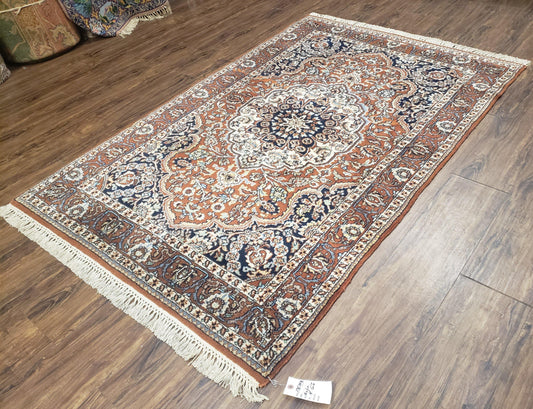 Antique Indian Kashmiri Area Rug 4x6, Wool Hand-Knotted Red & Ivory Floral Medallion Persian Carpet, Vintage Oriental Entryway Rug 4 x 6