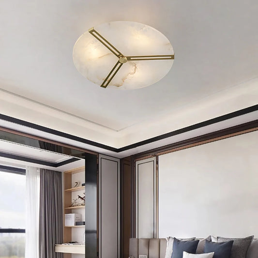 Round Copper Alabaster Ceiling Light