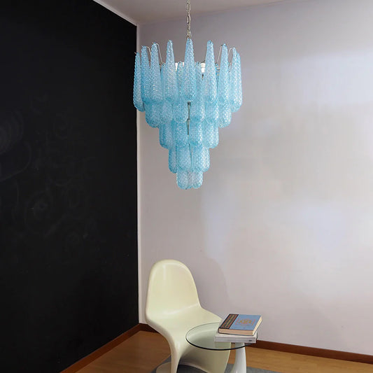 Vintage Murano Blue Petals Drop Glass Chandelier