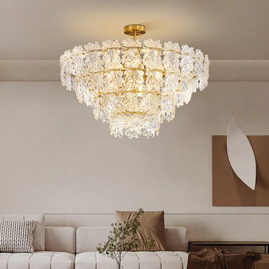 Mazzega Murano Transparent Amber Glasses Chandelier