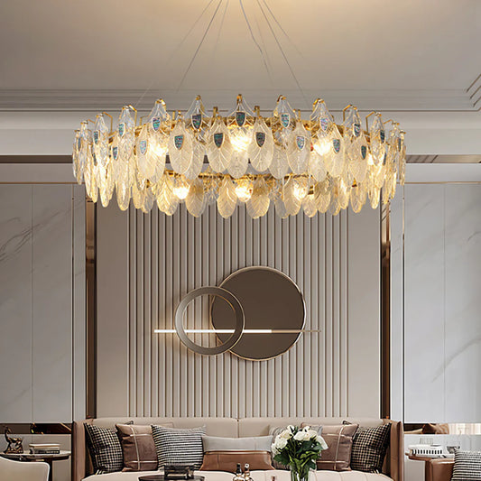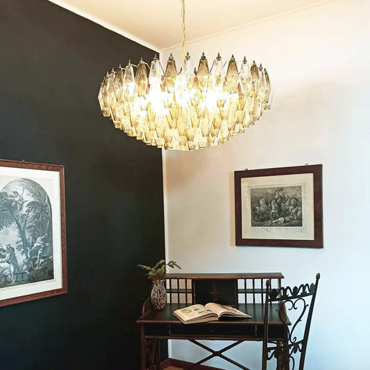 Vintage Amber Murano Glass Petals Drop Chandelier